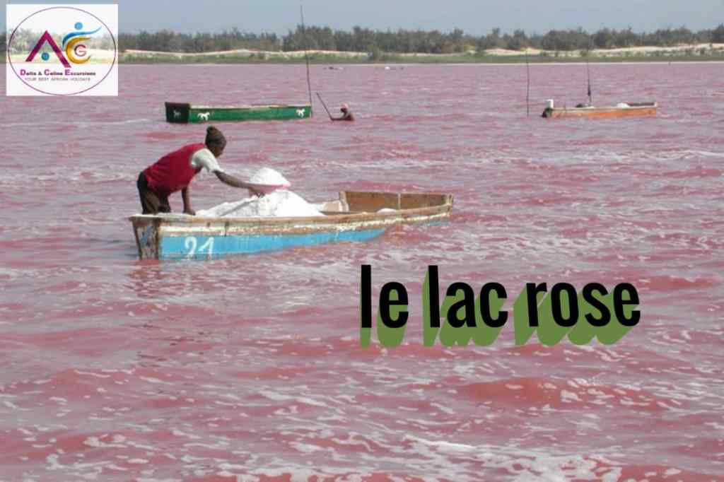- Arrivée au lac Rose (lac Retba), baignade dans l’eau salée du lac Rose où vous aurez une sensation extraordinaire de flottaison, une sensation unique comme la sensation de la mer Morte en Jordanie.